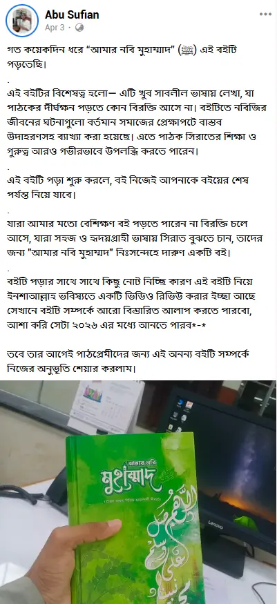 বই: আমার নবি মোহাম্মাদ (সা.) লেখক: জাকারিয়া মাসুদ শারঈ সম্পাদক: মুফতি আবদুর রহমান পৃষ্ঠা সংখ্যা: ৫০৪ বাইন্ডিং: হার্ডকভার